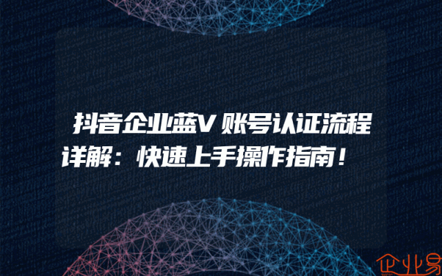 - 抖音企业蓝V账号认证流程详解:快速上手操作指南!