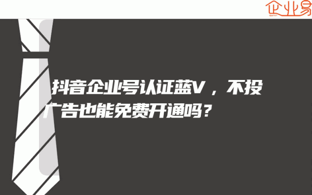 - 抖音企业号认证蓝V,不投广告也能免费开通吗?
