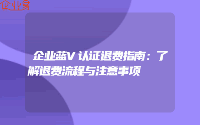 - 企业蓝V认证退费指南:了解退费流程与注意事项