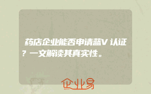 - 药店企业能否申请蓝V认证?一文解读其真实性。