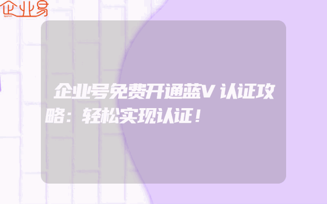 - 企业号免费开通蓝V认证攻略:轻松实现认证了解蓝V认证及其重要性在当今互联网时代,企业号作为社交媒体平台上的重要身份标识,越来越受到各行各业的重视。蓝V认证作为企业号的标志性认证,其意义在于验证企业身份的真实性和权威性,有助于提升企业的公信力