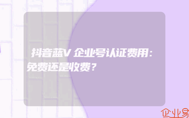 - 抖音蓝V企业号认证费用:免费还是收费?