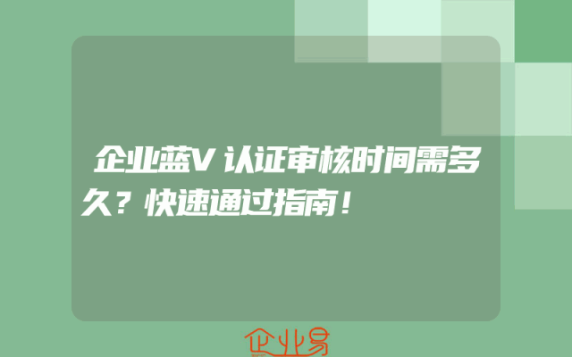 - 企业蓝V认证审核时间需多久?快速通过指南!