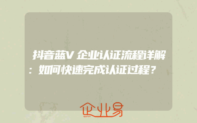 - 抖音蓝V企业认证流程详解:如何快速完成认证过程?