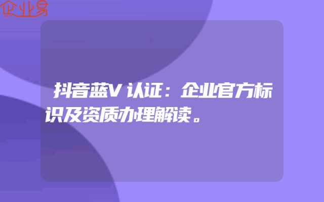- 抖音蓝V认证:企业官方标识及资质办理解读。
