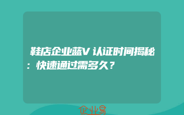 - 鞋店企业蓝V认证时间揭秘:快速通过需多久?