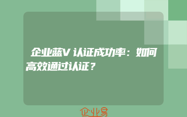- 企业蓝V认证成功率解析:如何高效通过认证?一、了解蓝V认证基本概述在当今互联网时代,企业蓝V认证已成为企业信誉的“身份证”。它是各大社交平台为企业提供的官方身份标识,用以确认企业用户的真实性和合法性,从而增强企业在平台上的公信力和影响力。企