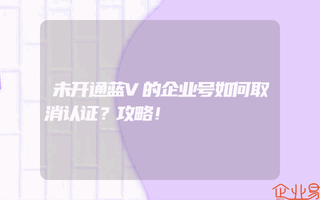 - 未开通蓝V的企业号如何取消认证?攻略!