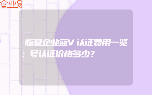 - 临夏企业蓝V认证费用一览:号认证价格多少?