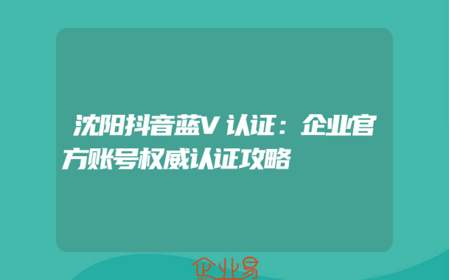 - 沈阳抖音蓝V认证:企业官方账号权威认证攻略