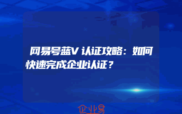 - 网易号蓝V认证攻略:如何快速完成企业认证?