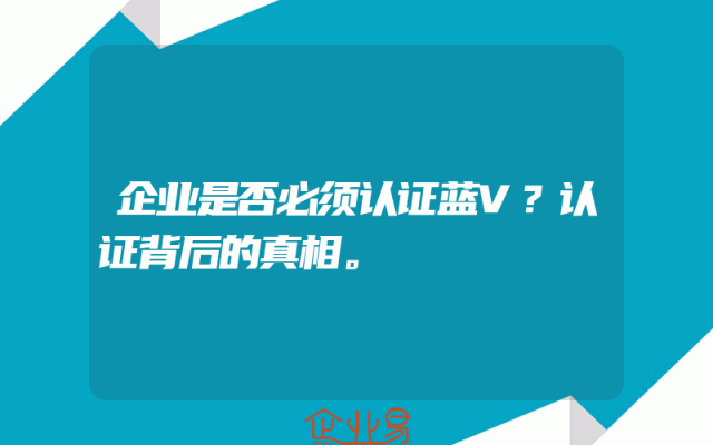 - 企业认证必须选择蓝V认证吗?认证真相。
