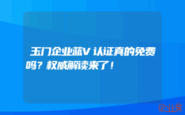 - 玉门企业蓝V认证真的免费吗?权威解读来了!