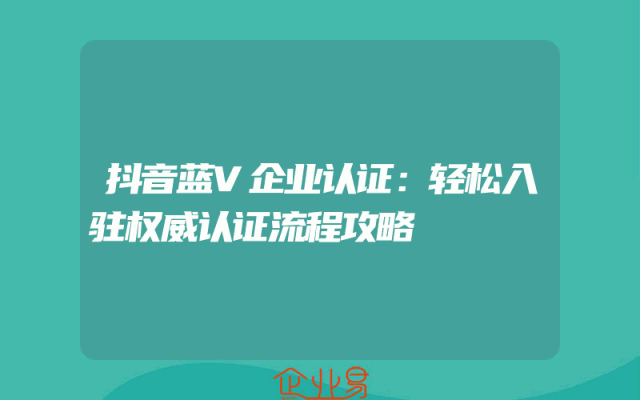 - 抖音蓝V企业认证:轻松入驻权威认证流程攻略