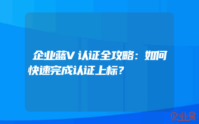 - 企业蓝V认证全攻略:如何快速完成认证上标?