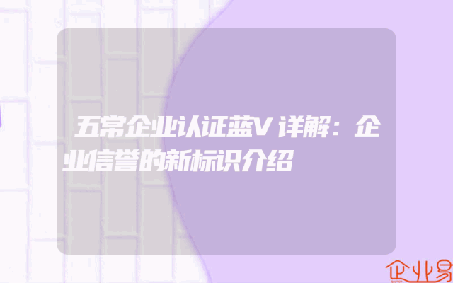 - 五常企业认证蓝V详解:企业信誉的新标识介绍