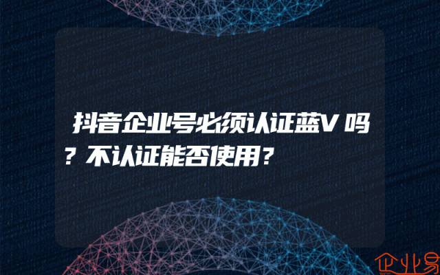 - 抖音企业号必须认证蓝V吗?不认证能否使用?