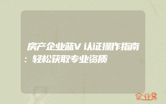 - 房产企业蓝V认证操作指南:轻松获取专业资质