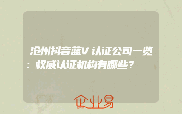 - 沧州抖音蓝V认证公司一览:权威认证机构有哪些?