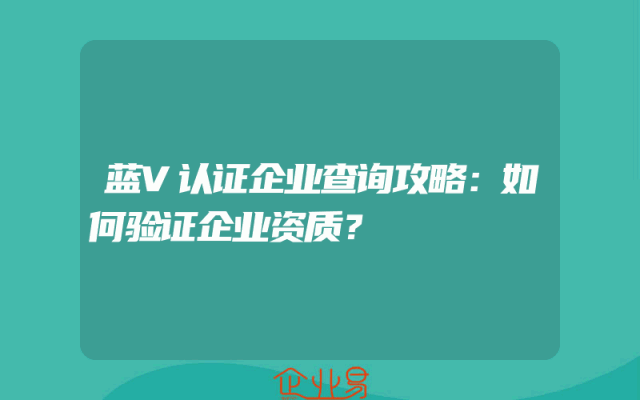 - 蓝V认证企业查询攻略:如何验证企业资质?