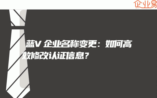 - 蓝V企业名称变更:如何高效修改认证信息?一、了解蓝V企业认证的重要性在当今的商业环境中,蓝V企业认证对于企业的信誉和形象至关重要。它不仅代表企业的官方身份,更是企业品牌形象的象征。因此,当企业名称发生变更时,及时修改认证信息显得尤为重要。这