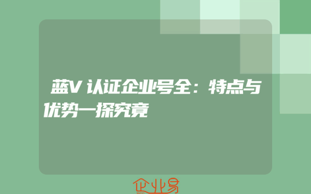 - 蓝V认证企业号全:特点与优势一探究竟