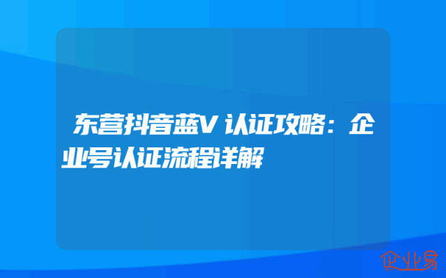 - 东营抖音蓝V认证攻略:企业号认证流程详解