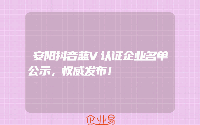 - 安阳抖音蓝V认证企业名单公示,权威发布!