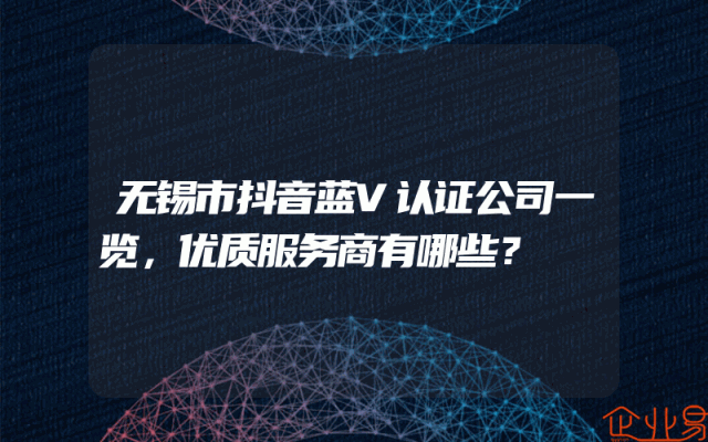 - 无锡市抖音蓝V认证公司一览,优质服务商有哪些?