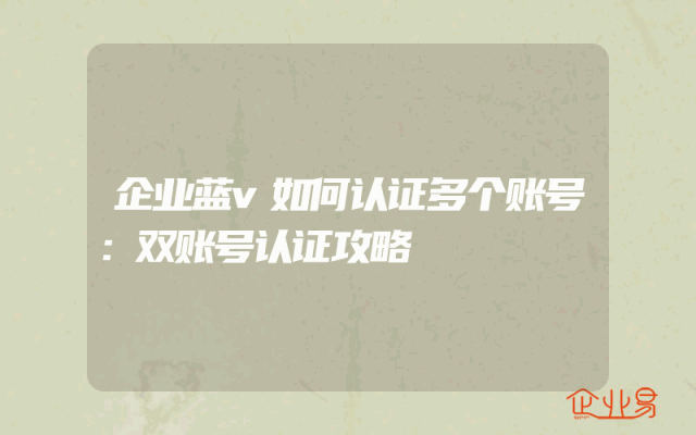 - 企业蓝v如何认证多个账号:双账号认证攻略