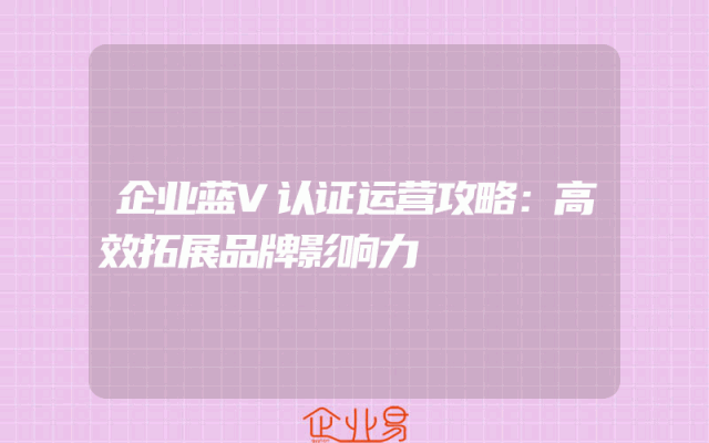 - 企业蓝V认证运营攻略:高效拓展品牌影响力