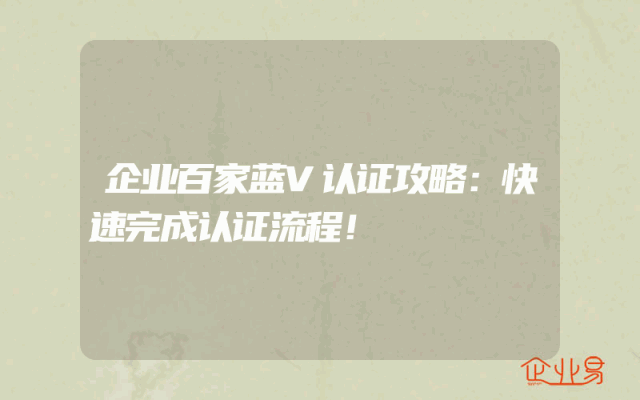 - 企业百家蓝V认证攻略:快速完成认证流程!
