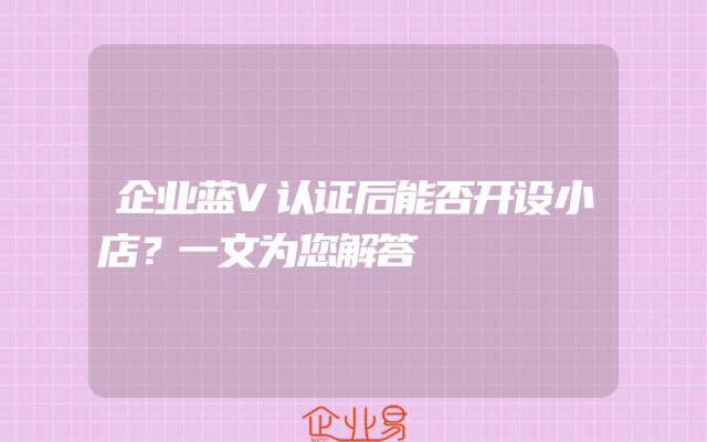 - 企业蓝V认证后能否开设小店?一文为您解答