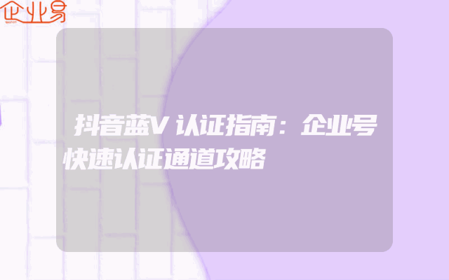 - 抖音蓝V认证指南:企业号快速认证通道攻略
