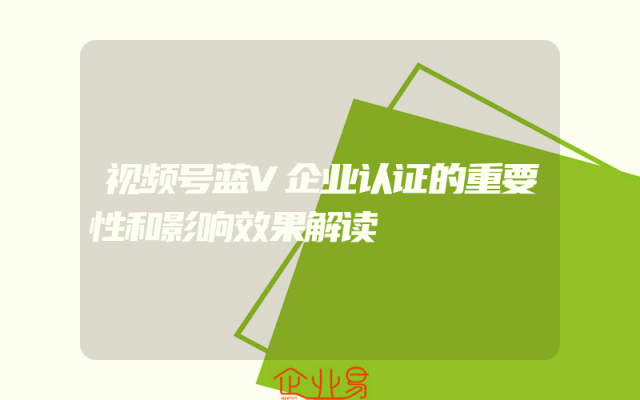 - 视频号蓝V企业认证的重要性和影响效果解读