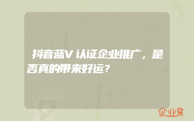 - 抖音蓝V认证企业推广,是否真的带来好运?