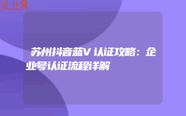 - 苏州抖音蓝V认证攻略:企业号认证流程详解