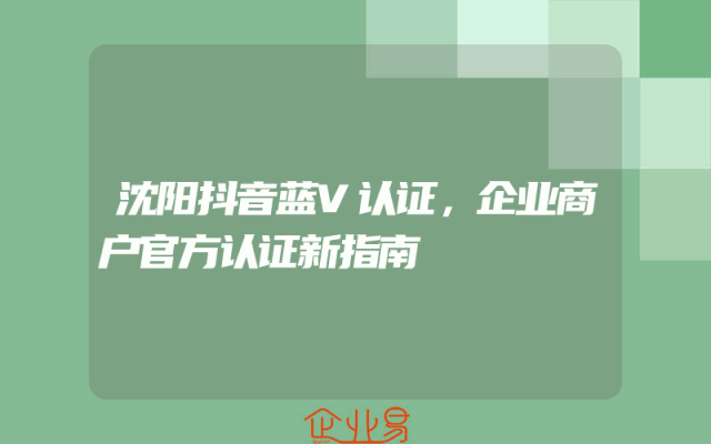 - 沈阳抖音蓝V认证,企业商户官方认证新指南