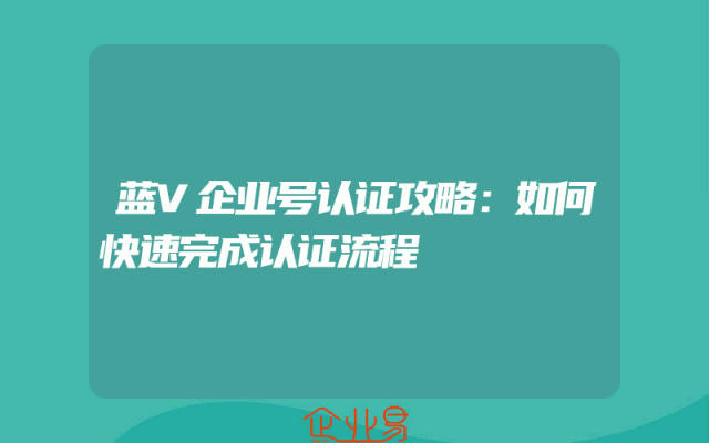 - 蓝V企业号认证攻略:如何快速完成认证流程