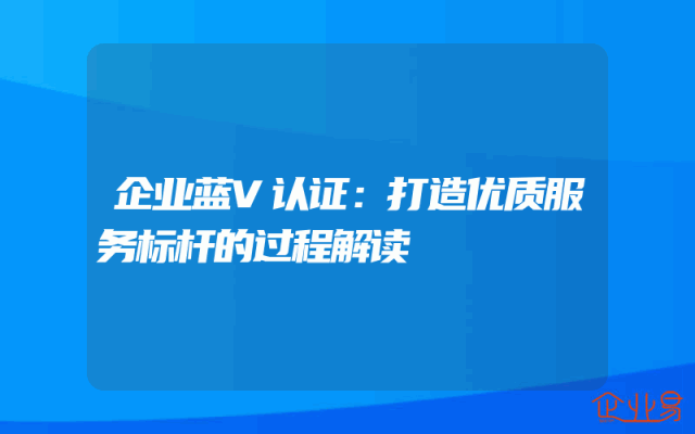 - 企业蓝V认证:打造优质服务标杆的过程解读