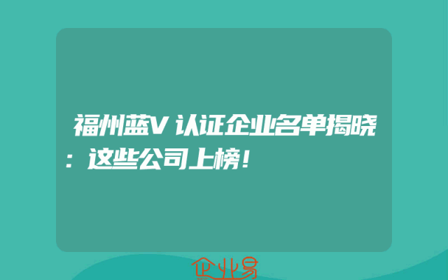 - 福州蓝V认证企业名单揭晓:这些公司上榜!