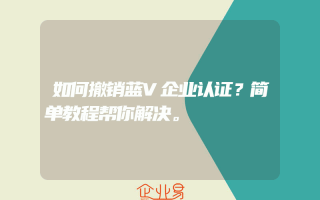 - 如何撤销蓝V企业认证?简单教程帮你解决。