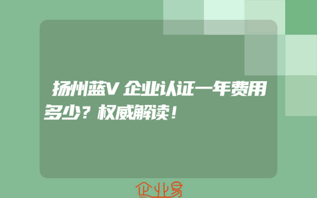 - 扬州蓝V企业认证一年费用多少?权威解读!