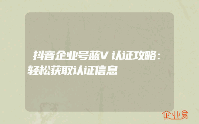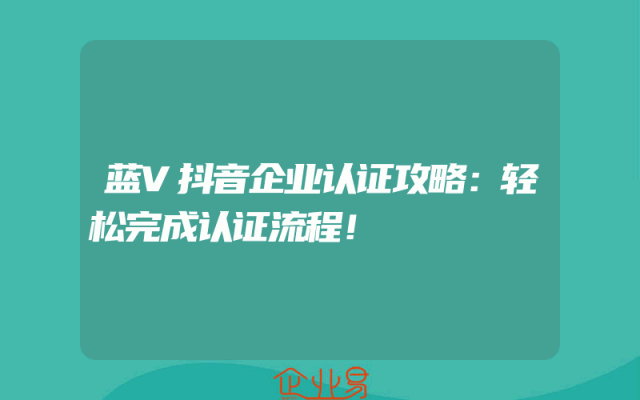 - 蓝V抖音企业认证攻略:轻松完成认证流程!