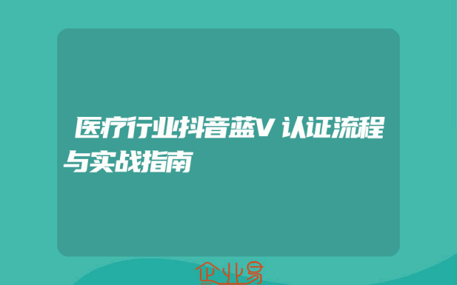- 医疗行业抖音蓝V认证流程与实战指南