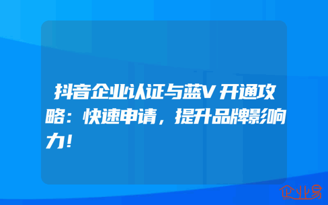 - 抖音企业认证与蓝V开通攻略:快速申请,提升品牌影响力!