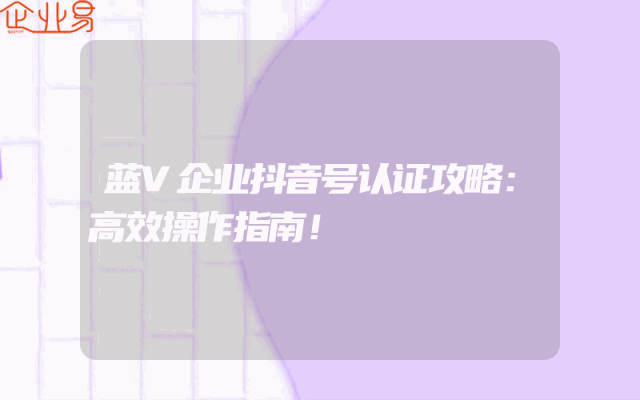 - 蓝V企业抖音号认证攻略:高效操作指南!