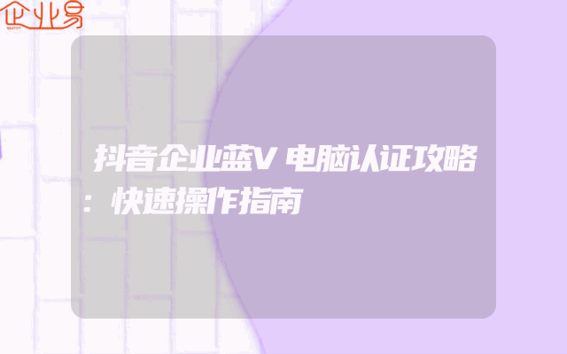 - 抖音企业蓝V电脑认证攻略:快速操作指南