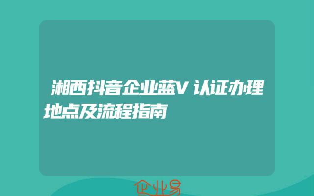 - 湘西抖音企业蓝V认证办理地点及流程指南