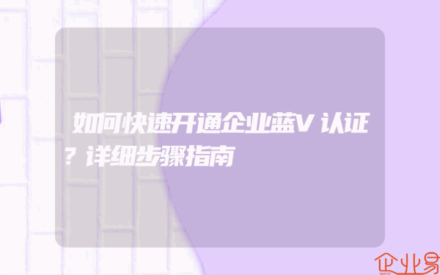- 如何快速开通企业蓝V认证?详细步骤指南